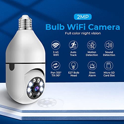 1080P Light Bulb Camera, Wireless 2.4GHz WiFi Home Security Camera, 360° Surveillance Cam with Motion Detection Alarm Night Vision Light Socket Camera(NO SD Card)