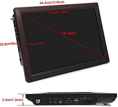 14Inch Portabel ATSC Digital Television 1080P HD HDMI Video Player Support USB Port,SD/MMC Card,U Disk,MKV, MOV, AVI, WMV, MP4, FLV, MPEG1-4, RMVB, 1080P Video MP3 for Outdoor, Home, Car,Bathroom