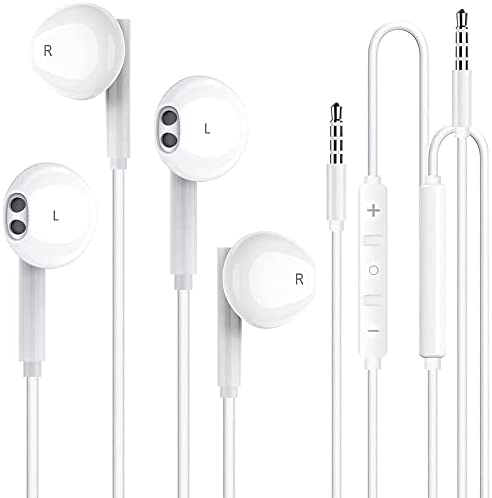2 Pack 3.5mm Wired Headphone Plug, in-Ear Earphones, Earbuds Noise Isolating with Built-in Microphone & Volume Control Compatible with iPhone 6s 6 Plus 5s 5 iPad iPod MP3 MP4 Samsung Android Laptop