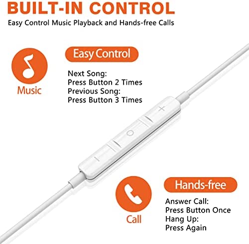 [Built-in Controller] – Switch songs or answer calls without touching the phone, the wired headphones have a built-in controller for easy operation, just press the button to increase/decrease volume, next/previous song, answer/hang up calls.