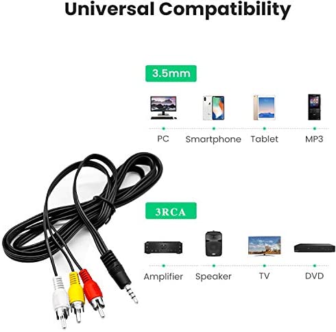 3.5mm to RCA Camcorder AV Audio Video Output Cable, 3.5mm 1/8″ to 3 RCA Male Cable Cord Compatible with Sony TV TCL Panasonic Canon Camcorder Samsung TV (3.3ft)