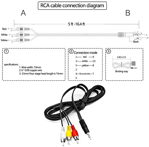 2.Cable length: 1m /3.3ft; red, white plug then left and right channels, yellow plugs connected video signals.Perfectly connect your video or audio electronic device via RCA cable to your TV.