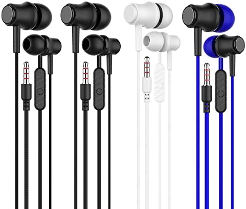 4 Packs in-Ear Headphones Earphones, Wired Earbuds Earphones for MP3 MP4 iPod iPhone Samsung with Round Headphone Plug (2*Black ,1*White,1*Blue)