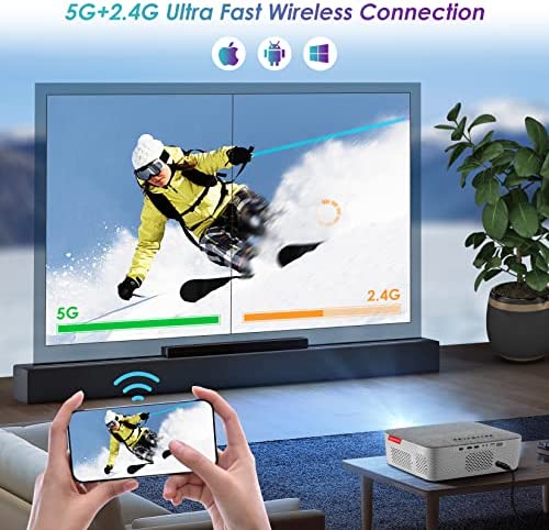 5G WiFi Projector 4K Supported – FANGOR 340ANSI Native 1080P Projector Bluetooth Outdoor Movie Projector / Full Sealed Design/Digital Keystone/300” Display/50% Zoom, for Phone/PC/DVD/TV/PS4