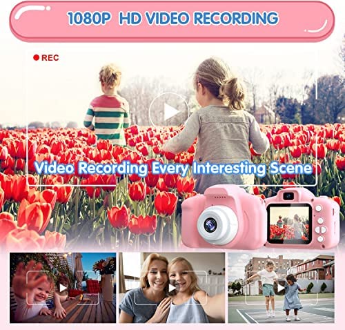 Acuvar Full 1080P Kids Selfie HD Compact Digital Photo and Video Rechargeable Camera with 32GB TF Card & 2″ LCD Screen and Micro USB Charging Drop Proof (Pink)