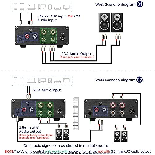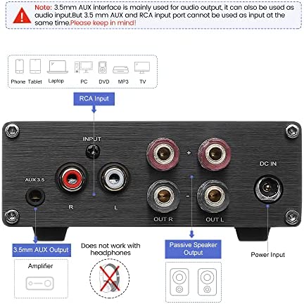 ❸ Two input ways:3.5mm AUX Audio input/ RCA Audio input(3.5mm interface is also Aux Audio output interface(3.5mm AUX sed as audio output can go to connect any Powered device: Speakers, Amplifier,Active Subwoofer ect.).More detail connection and use ways,pls see the main picture shown)