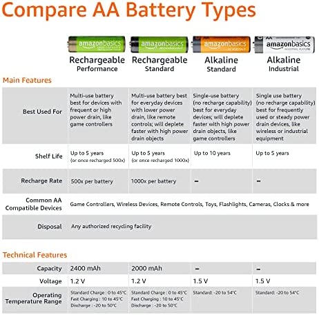 SINGLE USE: These batteries are NOT rechargeable; for rechargeable options, check out Amazon Basics rechargeable batteries