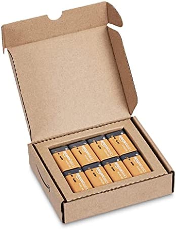 Amazon Basics 8 Pack 9 Volt Performance All-Purpose Alkaline Batteries, 5-Year Shelf Life, Easy to Open Value Pack