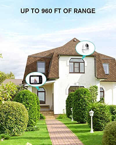 Secure and Stable Connection: We remastered the classic baby monitor design and the latest 2.4GHz FHSS Technology for super-stable, HACK-FREE connection and supremely-detailed digital vision & sound. Up to 960ft long range (straight line and open space) and will providing you with clear real-time video and audio.It allows you to happily cook downstairs, enjoy the sun by the pool.