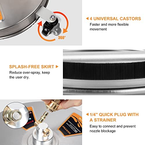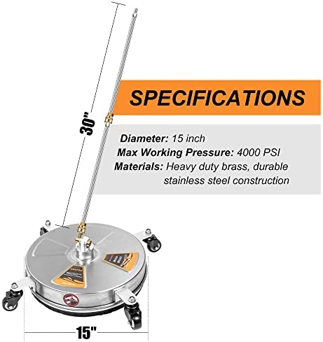 BEETRO 15” Pressure Washer Surface Cleaner Attachment with 4 Wheels, Stainless Steel Housing and 2 Spray Wands,Power Washer Accessory for Cleaning Driveway, Sidewalk, Patio,Max. 4000 PSI