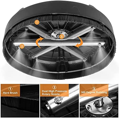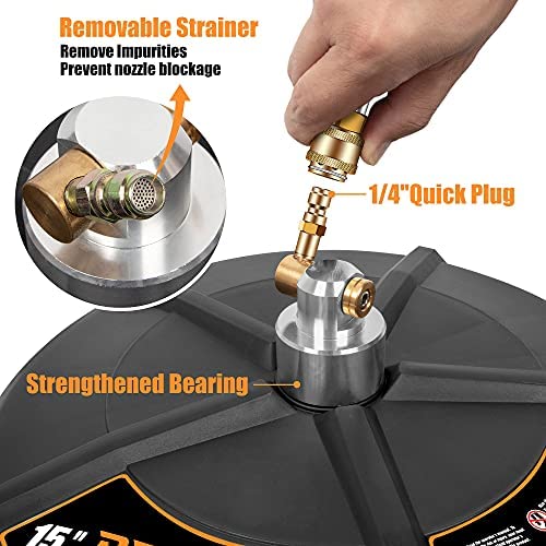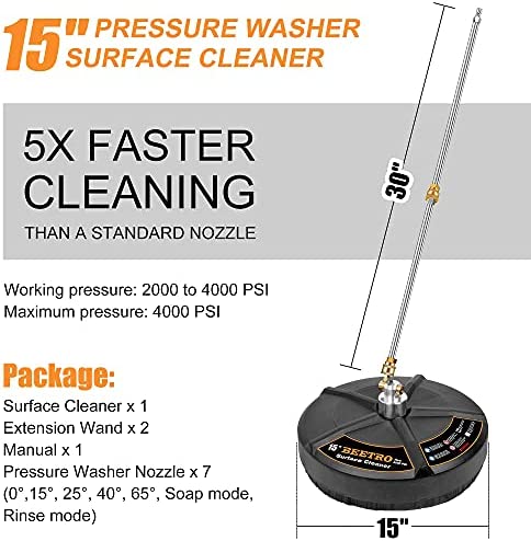 BEETRO 15″ Pressure Washer Surface Cleaner, Power Washer Accessory for Driveway, Sidewalk, Deck, Patio Washing, with 1/4 inch Quick Plug, 2 Extension Wands, 7 Nozzles, Max 4000 PSI