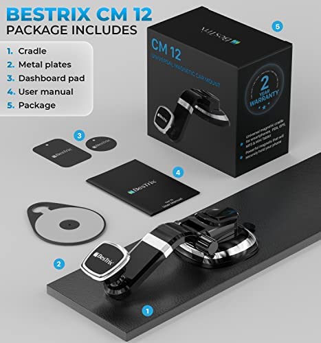 BESTRIX Phone Holder for Car, Magnetic Car Phone Mount | Dashboard Cell Phone Car Phone Holder Compatible with iPhone 12 11 Pro,Xr,Xs,XS MAX,XR,X, Galaxy S20 Note 20 Ultra & All Smartphones