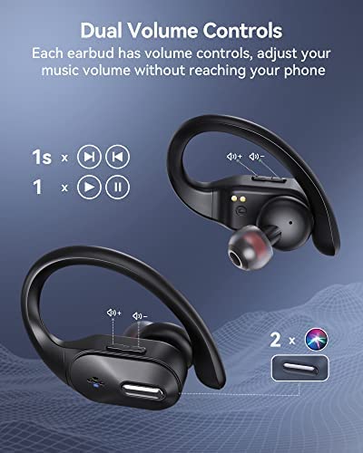 【Dual Volume Control & Stereo Bass Sound】Each bluetooth earbud has independent volume and track controls so you could adjust your music without reaching your phone even when you use one earbud alone as mone mode. Equipped with advanced chip, These earbuds with microphones provides stereo sound with deep bass and clear treble. It’s built-in HD microphones with noise cancellation allowing you to enjoy clear hands-free calls as if you are communicating face to face.