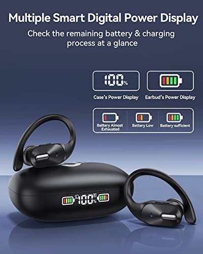 【Multiple Smart LED Digital Display】With the smart LED digital power display of this wireless earbuds, you could check the remaining battery level and charging process of both earbuds and charging case at a glace even without opening the case lid. The percentage in the middle indicates the battery level of charging case, and the battery icons on both sides indicate the remaining battery of the left and right earbud respectively.Therefor you’d never worry about a sudden low battery alert.