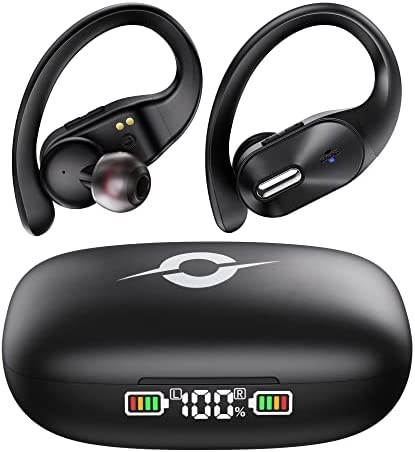 Bluetooth Headphones Wireless Earbuds with Wireless Charging Case 48hrs Playtime LED Digital Display Deep Bass Sound Earphones with Built in Mic and Over Earhooks Waterproof Headset for Sports Orancu
