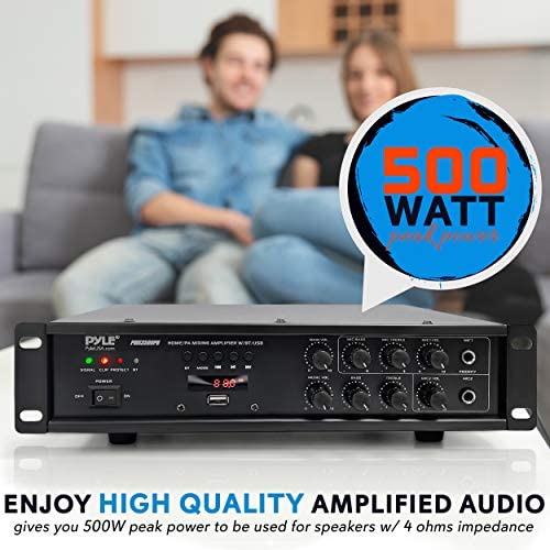 Bluetooth Home PA Mixing Amplifier – 500W Home Audio Rack Mount Stereo Power Amplifier Receiver w/FM Radio, Digital LED Display, USB/AUX/Mic, Optical/Coaxial, AC-3, 70V/100V Output – Pyle PMX3500PH