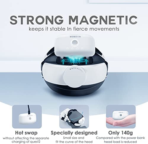 BOBOVR M2 Pro Battery Pack Head Strap Compatible with Quest 2,Magnetic Connection and Lightweight Design, 5200mah Replaceable Hot Swap Power Bank VR Accessories