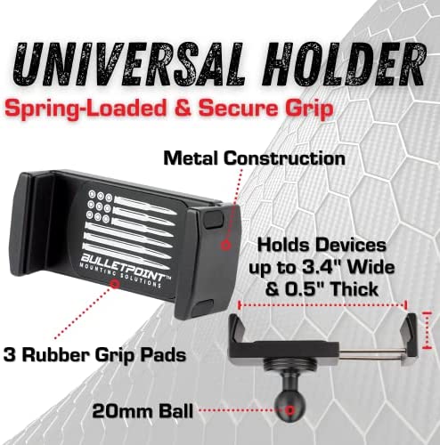 Bulletpoint Dash Mount Cell Phone Holder RAM Truck Compatible (2019+ 1500, 2500, 3500 and TRX) with 20mm Ball Mount – Compatible with iPhone and Android Smartphones (Dual Ball with 2 Phone Holders)