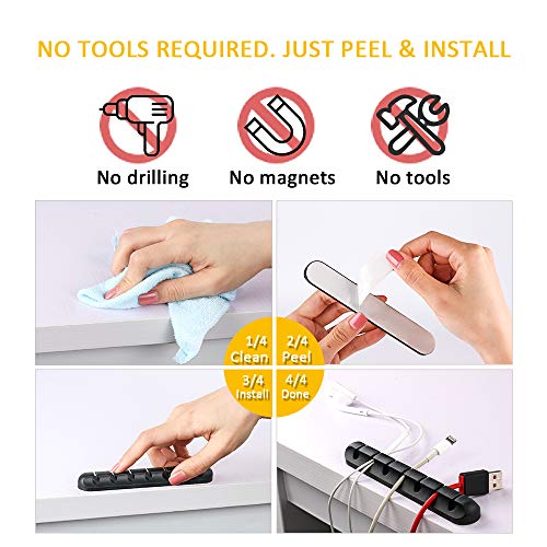 Cable Clips, 3 Packs Cord Management Organizer, Silicone Adhesive Hooks, Wire Cord Holder for Power Cords and Charging Accessory Cables, Mouse Cable, PC, Office and Home (7, 5 and 3 Slots)