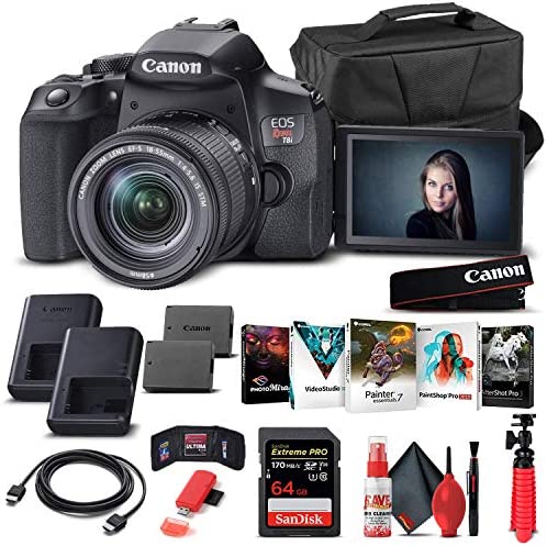 Canon EOS Rebel T8i DSLR Camera with 18-55mm Lens (3924C002) + 64GB Memory Card + Case + Corel Photo Software + LPE17 Battery + External Charger + Card Reader + HDMI Cable + More (Renewed)