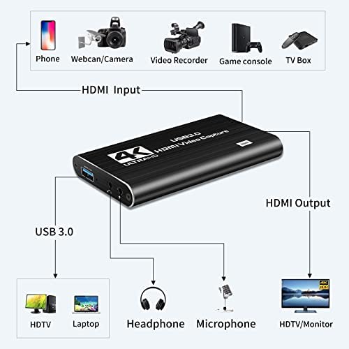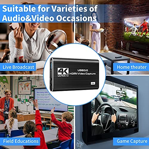 Capture Card, 4K Video Capture Card USB 3.0 1080P 60fps HDMI Audio Video Capture Device Portable Video Converter Game Capture Adapter for Gaming Streaming Live Broadcasting Teaching