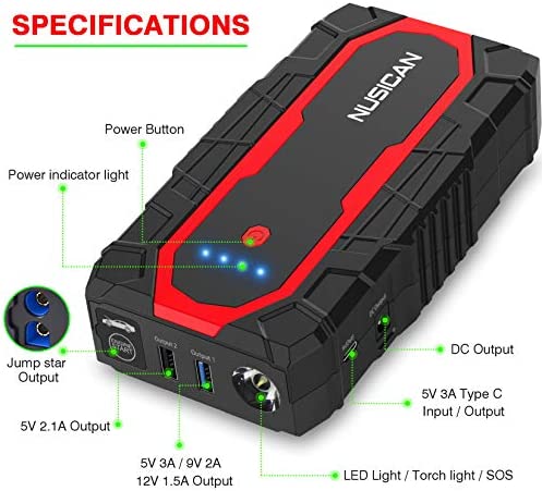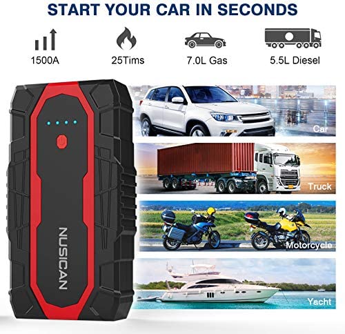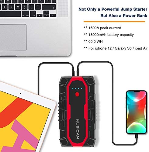 Car Battery Jump Starter, NUSICAN 1500A Lithium Car Starter (Up to 7L Gas & 5.5L Diesel Engine) 12V Auto Lithium Battery Booster for Cars, Trucks, SUV, Portable Power Pack with USB Quick Charge 3.0