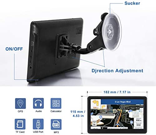 【Large Capacity】Our sat nav comes with High performance CPU, built-in 8GB ROM 256MB RAM, support up to 32G extended memory, plenty of room for you to storage the maps and materials, and also comes with a car charger, back bracket mount, (no SD/TF card included)