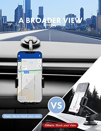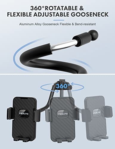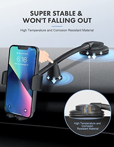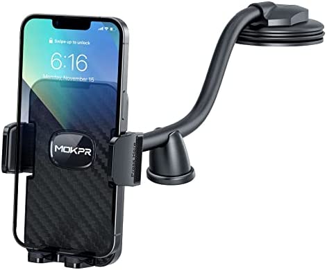Cell Phone Mount for Car, MOKPR Car Phone Holder with Long Arm Dashboard Anti-Shake Stabilizer Phone Holder Compatible with iPhone, Android Phone etc
