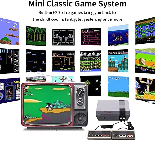 Classic Retro Game Console, Plug and Play for Old School NES Stystle Video Game Console Built-in 620 Games with 2 Classic Controllers