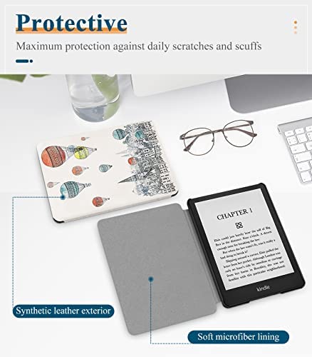Dadanism Case Fits Amazon 6.8″ Kindle Paperwhite(11th Generation 2021 Release), Casing Shell Cover with Auto Wake/Sleep for Kindle Paperwhite Signature Edition and E-Reader Protector, City Balloon