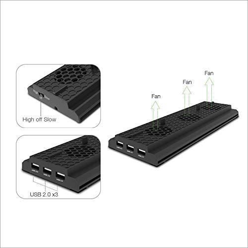 🎮 PRODUCT SPECIFICATIONS: The DOBE Xbox Cooling Stand measures 24.2 x 9 x 3 cm and is available in a black color. It hosts a High/Off/Slow switch for cooling adjustment as per gaming requirement.