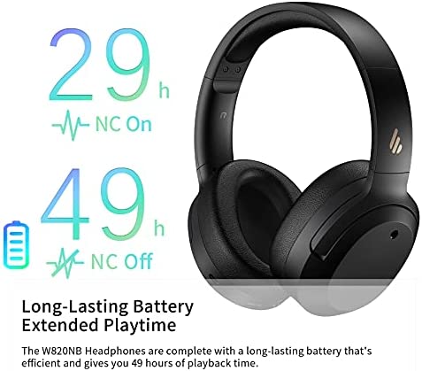 EDIFIER Bluetooth Headphones with Active Noise Cancelling, 49H Playtime Wireless Bluetooth Headset with Deep Bass Hi-Res Audio, Lightweight,Comfortable Ear Cups, for Travel, Home Office,W820NB,Black