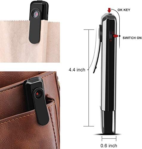 ehomful Body Camera HD 1080P Wearable Mini Hidden Spy Pen Camera Portable Cop Pocket Cam Convert Video Recorder USB/One Key Fast Record Police Body Cameras for Home/Office (No Need Charging Cable)