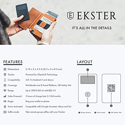 Ekster: Tracker Card – Solar Powered Wallet Tracker- GPS and Bluetooth – Two-Way Ringer