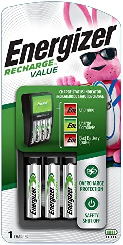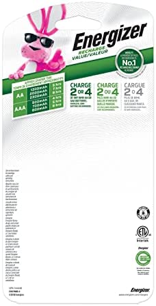 There’s a simple way to save money and always have the power you need with the Energizer Recharge Value Charger. Conveniently constructed to charge 2 or 4 AA or AAA NiMH batteries, the Value Charger will have your batteries ready for use in as little as 5 hours. LED indicator lets you know when charging is complete, and the auto safety shutoff prevents damaging overcharging. Use with any of the Energizer Recharge batteries for the economical way to long-lasting power for all your electronic devices. Some usage tips from the user manual: • Ensure that batteries are inserted correctly to match polarity marks (+ and -) • When charging only 2 batteries, place both batteries in the left or right positions (see image in manual) • Charger is intended to be in a vertical or floor mount position • Never plug battery chargers into an extension cord • Best used with Energizer NiMH batteries