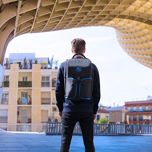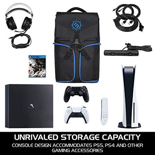 ENHANCE Gaming Console Backpack and Storage Case – Compatible with PS5, PS4 Pro & PS4 – Gear Arsenal Storage Compartments, Zippered Pockets for Controllers, Headsets, Games & Accessories – Blue