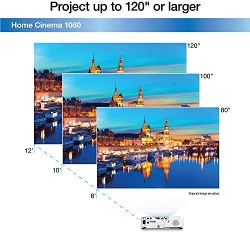 Epson Home Cinema 1080 3-chip 3LCD 1080p Projector, 3400 lumens Color and White Brightness, Streaming/Gaming/Home Theater, Built-in Speaker, 16,000:1 Contrast. Full 2-Year Limited Warranty (Renewed)
