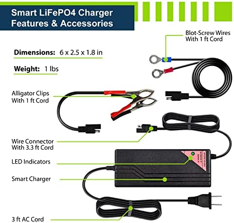 Efficiently Easy : The charger protects your LiFePO4 battery’s delicate structure by boosting charging efficiency and maximizing lifespan through its careful utilization of the CC/CV algorithm regardless if the battery has a BMS or not