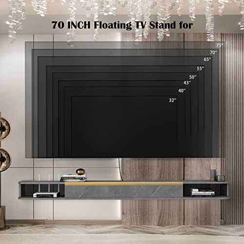 Floating TV Shelves,Wall-Mounted Floating TV Stand Entertainment Media Console Center Large Storage Cabinet for Living Room Bedroom (70 in, Dark Gray)