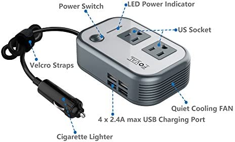 FOVAL 200W Car Power Inverter DC 12V to 110V AC Converter with 4 USB Ports Charger