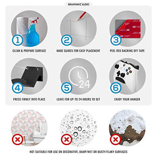 Game Controller Wall Mount Stand Holder (2 Pack) for XBOX ONE SWITCH PS4 STEAM PC NINTENDO, Universal Gamepad Accessories – No screws, Stick on, Black By Brainwavz (V2 – Improved Adhesion) UGC1