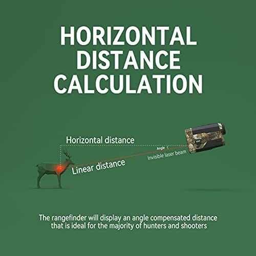 HORIZONTAL DISTANCE: Built-in horizontal distance calculator( or called ARC), the GS60 will provide horizontal distance and angle data; ideal for the majority of hunters and shooters. The horizontal distance yardage number is corrected for shot angle and needs no extra user input; shooters simply use the appropriate level ground bullet drop and wind adjustment for the range displayed and shoot. Archers use the appropriate level ground sight pin for the horizontal range displayed and shoot