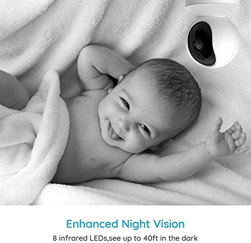 E1 wifi camera captures Super HD videos in the resolution of 2304×1296 (3 megapixels), and with 8 infrared LEDs, it can see up to 40ft in the dark.