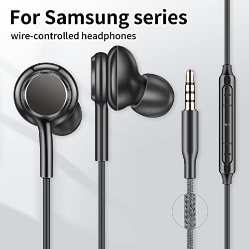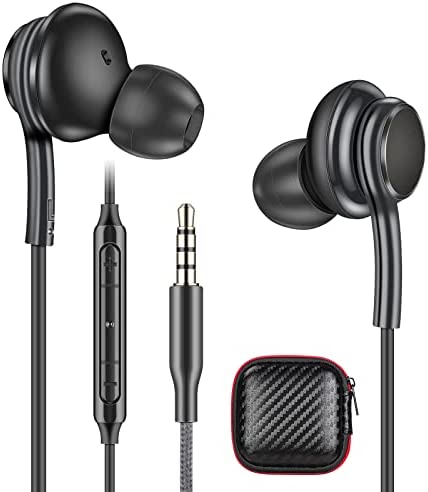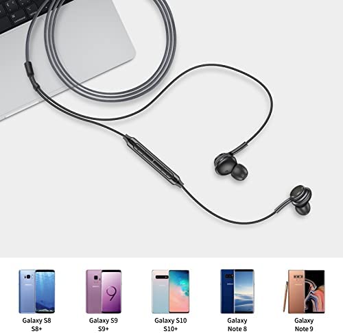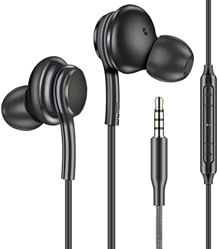 HoneyAKE 3.5mm Jack Wired Headphones for Samsung Galaxy S10 S10e Plus S8 Plus Wired Earphones Earbuds Stereo in-Ear Noise Canceling Headset Earphone with Microphone for Samsung Note 8, Black