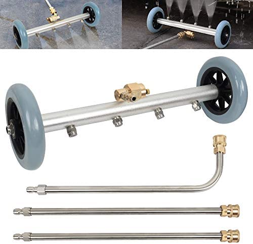 Hourleey 2-in-1 Undercarriage Pressure Washer Cleaner, Power Washer Surface Cleaner, 4000 PSI Dual-Function Undercarriage Water Car Broom Attachment with 16 Inch 2 Pack Extension Wand (Silver)