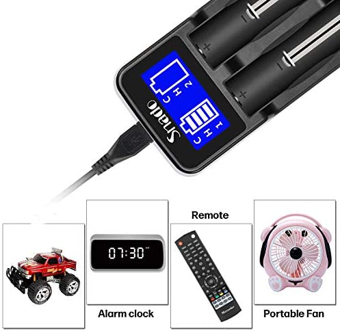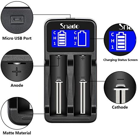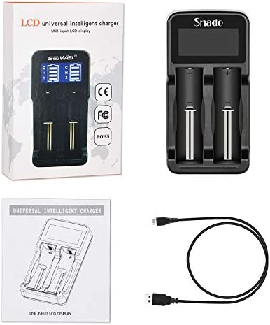 Intelligent Charger, Snado LCD Display Universal Smart Charger for Rechargeable Batteries Li-ion Batteries 18650 18490 18350 17670 17500 16340 14500, Ni-MH/Ni-Cd A AA AAA Batteries (2 Slots)