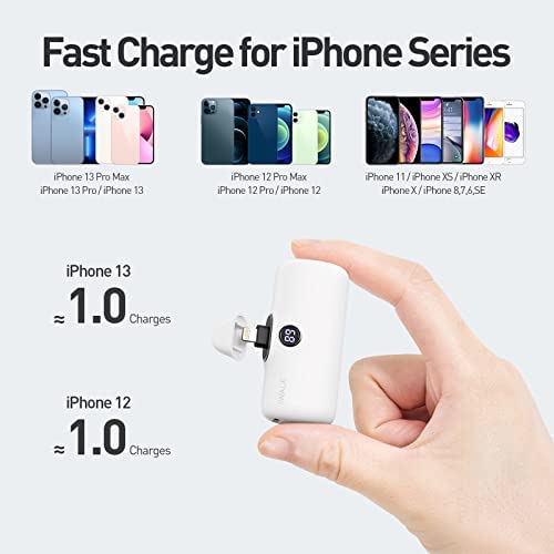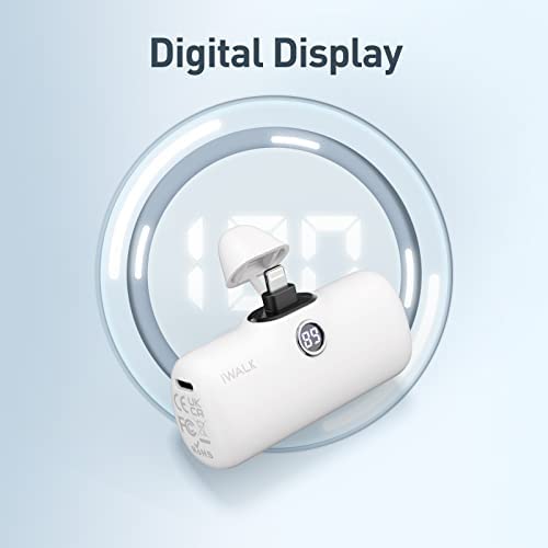iWALK Portable Charger 4800mAh Power Bank Fast Charging and PD Input Small Docking Battery with LED Display Compatible with iPhone 14/14 Pro Max/13/13 Pro Max/12/12 Pro/11/XR/XS/X/8/7/6,White