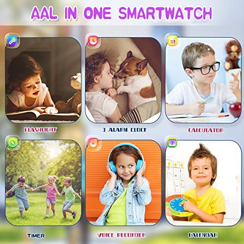 👍【Great Gift for Kids】This watch for kids with full touch color screen, it can be used anywhere, No SIM Card Required, don’t need to download app. Very easy to operate for kids. Intended for kids ages 5, 6, 7, 8, 9, 10, 11, 12 years, your boys & girls can begin to enjoy the kids smartwatch as soon as receiving.