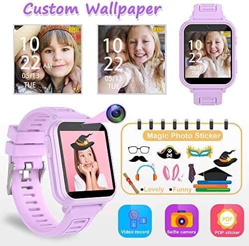 👍【HD Fun Selfie-Cam & Video】Kids touchscreen smart watch supports such as camera and video perfectly. Girls can capture quality videos, pictures and record their happy daily life and encourage children to discover beautiful things around! Set your favorite photo as wallpapers. This kids watch can store more than 10000+ HD photos or 6+ hours of video, which is best great gifts.