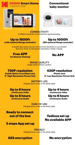 MONITOR YOUR BABY FROM YOUR PARENT UNIT OR PHONE APP: If you are in the next room or out in the garden, range is not an issue as you can monitor the baby from the included parent unit or the Kodak smartphone App.
